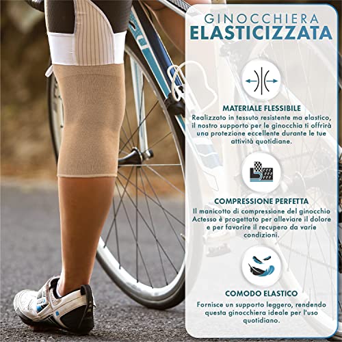 Actesso Ginocchiera Ortopedica Elasticizzata - Ginocchio Supporto e Sollievo per Dolori Articolari e Slogature. Ambidestra e Adatta a Uomini e Donne (Beige, L)