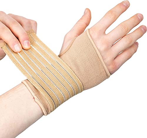 Actesso Polsiera per Dolori Articolari - (Beige o Nera). Tutore Polso Elastica per Slogature al Polso, RSI, Tendinite e Sport - Ambidestra (L, Beige)