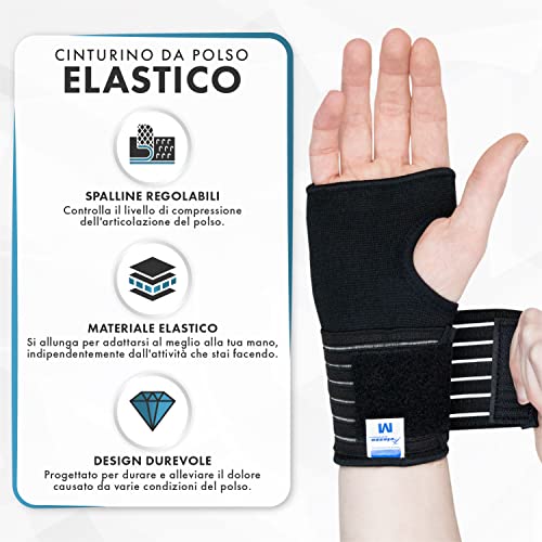 ADATTO A SVARIATE CONDIZIONI. Questa fascia per il polso può essere utilizzata per RSI, slogature, dolori articolari e tendinite. Riduce anche il rischio di infortuni durante gli sport o altre attività come golf, tennis o palestra.