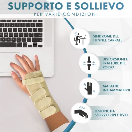 IDEALE PER MOLTEPLICI CONDIZIONI DEL POLSO - Questa stecca da polso è ideale per ridurre il dolore al polso e fornire supporto per la sindrome del tunnel carpale, fratture e distorsioni del polso, tendinite e RSI o artrite reumatoide.