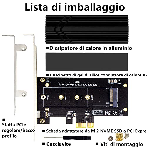 ACTIMED NVMe PCIe Adattatore M.2 SSD to PCI-e/Dissipazione Del Calore Potente/Compatibile con X1, X4, X8, X16 PCI-e Interface/Per M-Key M.2 SSD / 2230, 2242, 2260, 2280 / Bundle Pack Incluso