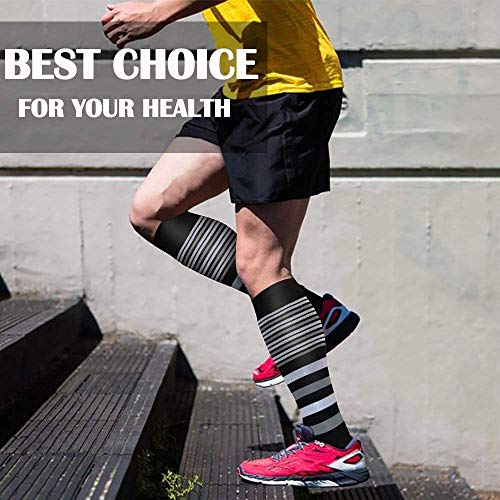 Qualità e comfort: ogni confezione contiene 4 paia di calzini a compressione a un prezzo imbattibile. Materiale confortevole e costruzione accurata. Non ci sono punti in cui si sfregano o si strappano. Realizzato in 85% nylon, 15% poliestere. Fornisce un allungamento a 360 gradi per una maggiore flessibilità e durata. Il tessuto traspirante ad alte prestazioni mantiene una temperatura ottimale.
