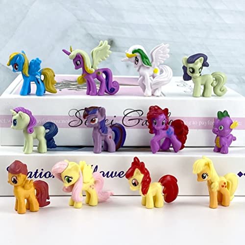 Set di 12 mini action figure pony, statuette da collezione Hilloly pony, decorazioni per torte con unicorno, decorazioni per desktop e regali di compleanno