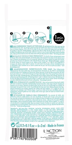 This semi-permanent touch up covers grey hair and discolored hair roots. Its formula is water-resistant and enables the color to last several days, depending on shampooing frequency. Little by little the hair adopts the dye color, making it last longer at each new application.
