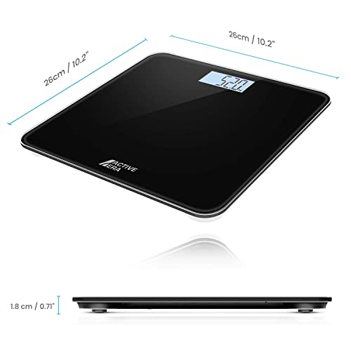 Active Era Bilancia Pesapersone Digitale Ultrasottile con Sensori di Precisione Accensione e Spegnimento Automatico in Vetro Temperato. Misurazione in stone/kg/libbre. Nero