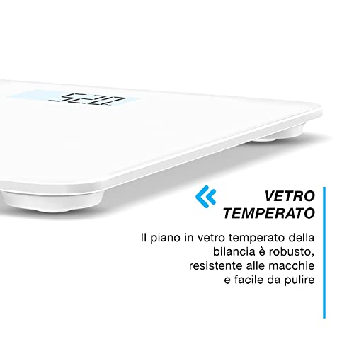 VETRO TEMPERATO: Grazie alla sua piattaforma ampia di 26 x 26cm in vetro temperato etra resistente di 6mm di spessore, la rende sicura e resistente allo stesso tempo. Inoltre, questa piattaforma garantisce una uniforme distribuzione del peso.