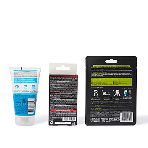 È composta da maschera in tessuto carbone, detergente 3 in 1 argilla e cerotti anti-punti neri