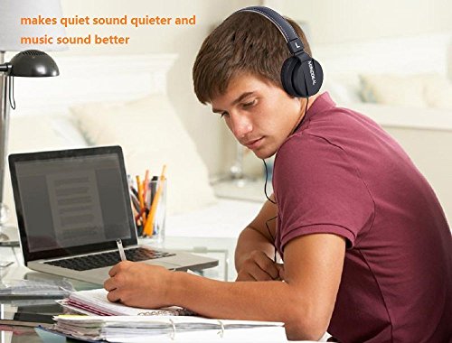 Active Noise Cancelling cuffie con microfono, Monodeal leggeri auricolari in-ear Headset, pieghevole da viaggio con adattatore da aereo - nero