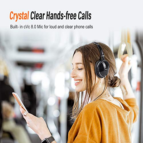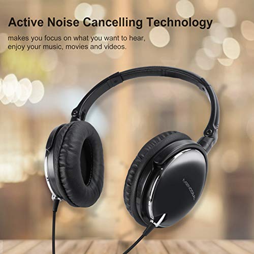 Active Noise Cancelling Headphones With Mic, MonoDeal Overhead pesante bassi profondi auricolari, Pieghevole e leggero auricolare viaggio con custodia (nera)