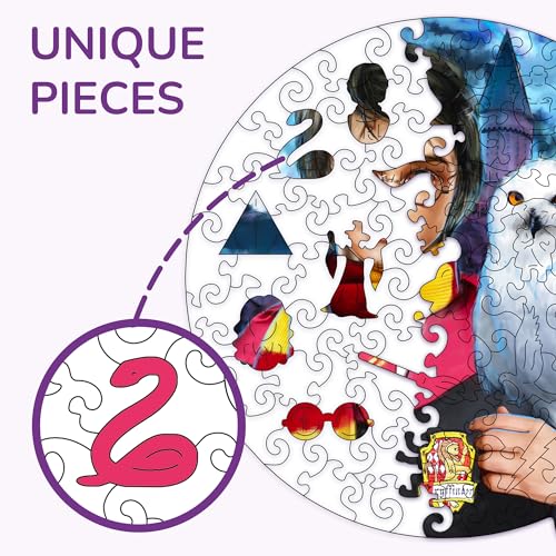 Caratteristiche del puzzle Harry Potter ha una dimensione ridotta, misura 21 x 22 cm e pesa 105 grammi. È composto da 100 pezzi a forma di serpente, occhiali, scopa, aquila, tra gli altri. I colori utilizzati sono all'interno della gamma multicolore. Il puzzle viene fornito in una scatola di legno con l'immagine sul davanti e la confezione misura 14 x 15 x 4 cm con un peso totale di 390 grammi. La dimensione del puzzle è superiore alla media offerta da altri produttori.