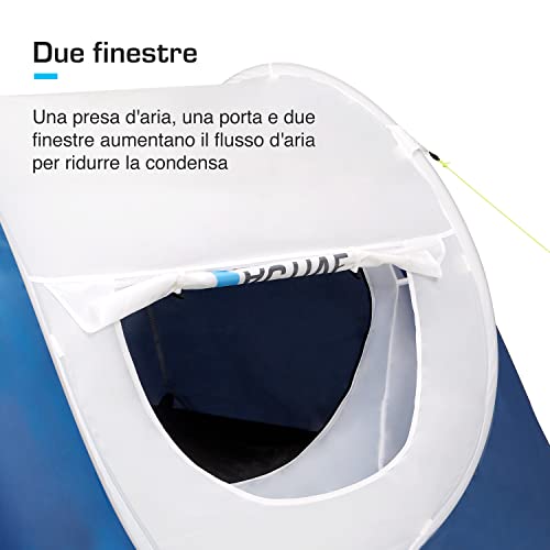 STRUTTURA A DOPPIO STRATO PREMIUM: Progettata con un doppio strato, lo strato esterno impermeabile impedisce l'ingresso di acqua, mentre lo strato interno riduce la condensa interna che è comune nelle tende più economiche. Per un maggiore comfort durante il campeggio, abbiamo cucito un telo da terra molto spesso direttamente nella base della tenda.
