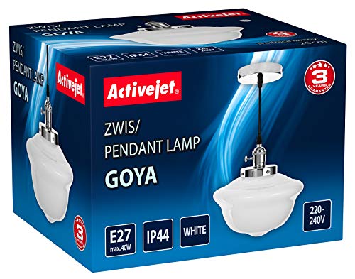 Moderna lampada a sospensione con struttura in metallo e paralume in vetro