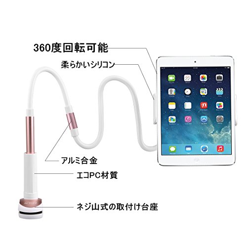 ACTOPP Supporto Tablet iPad da Letto, Porta Cellulare Tablet Universale Portatile Braccio Lungo Regolabile con Staffa per iPad Telefono da 4 a 12,9 Pollici da Letto Tavolo Scrivania Comodino (Giallo)