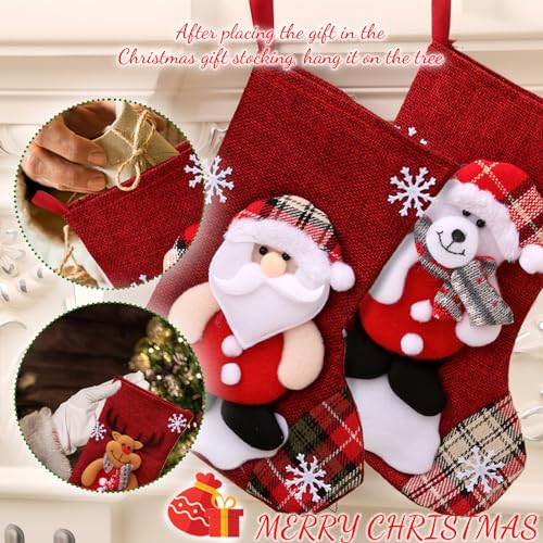 【Set di calze di Natale】: riceverai graziose calze di Natale con quattro diversi modelli di Babbo Natale, pupazzo di neve, renna e orso. Non solo possono essere utilizzati per conservare i regali di Natale, ma possono anche essere utilizzati come decorazioni natalizie per creare una forte atmosfera natalizia.