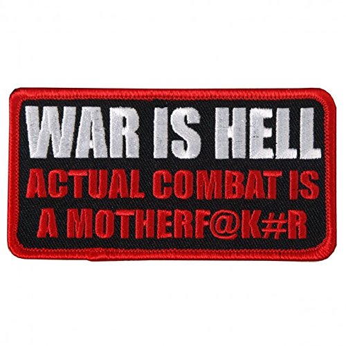 WAR IS HELL, Actual Combat is a Motherf@k#r, Iron-On/Saw-On, Heat Sealed Backing Rayon PATCH - 4" x 2"