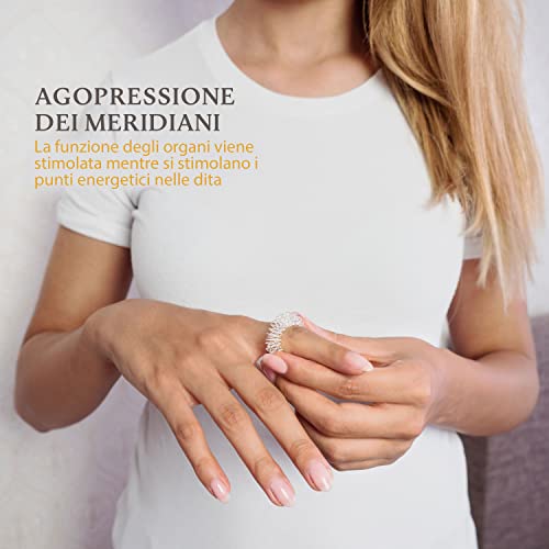 210 PUNTI DI PRESSIONE - Un singolo anello di digitopressione contiene 210 punti di pressione che distribuiscono uniformemente la pressione sulle dita. Una pressione piacevole, niente più punture!