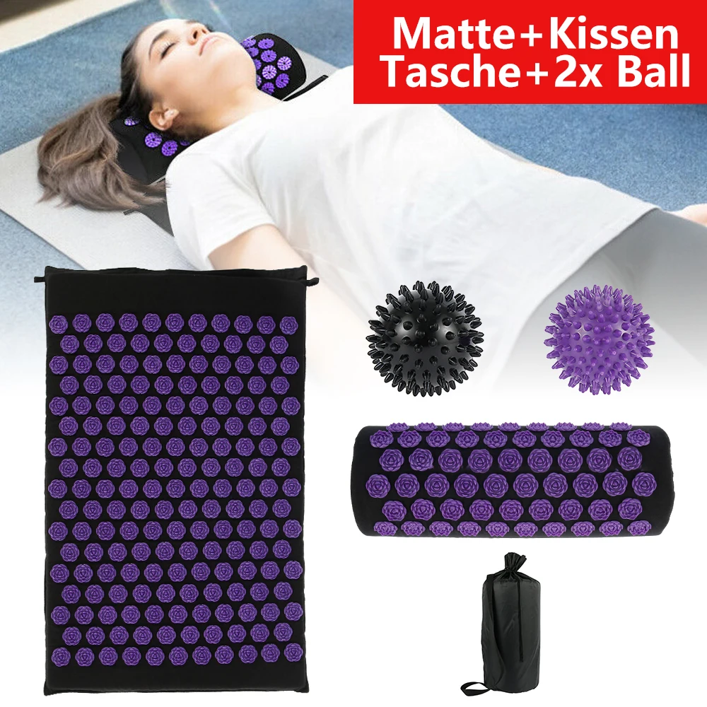 Home Gym Acupressure Mat and Pillow Set Massager Cushion Massage Yoga Mat Acupressure Relieve Stress Back Body Pain Spike Mat