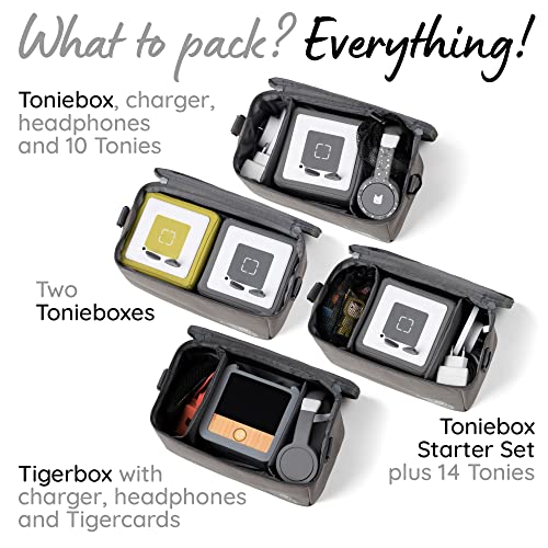 Orsa per cubi acustici (es.Toniebox e Tigerbox Touch) | Grigio Elefante | Scomparti Interni Regolabili | Tasca in Rete per Accessori (es.10 Figure dell'Udito (Tonies) o schede SD)
