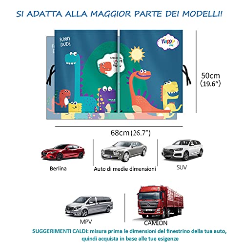 ACwiwil tende da sole per finestre per auto per bambini con protezione dai raggi UV, chermo per la privacy, parasole per finestrino laterale con aspirazione magnetica, Dinosaur Cartoon Set di 2