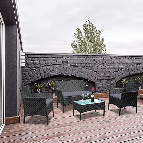 ACXIN Set di mobili da giardino in rattan sintetico, per 4 persone, set di mobili da balcone, set con 2 divani, tavoli, sedie singole e cuscini di colore antracite