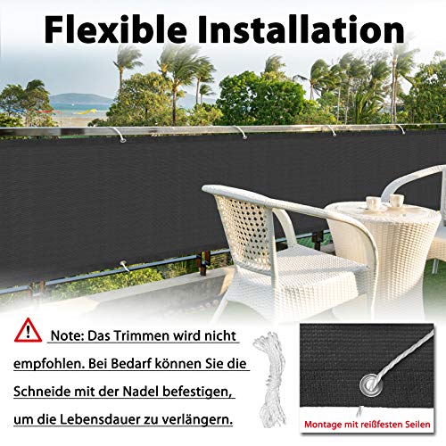 Pratica protezione per la privacy per balcone: colore: antracite/grigio, dimensioni: 75 x 600 cm/90 x 600 cm. Le porte del balcone sono realizzate in HDPE, riducendo la visibilità fino al 99%.