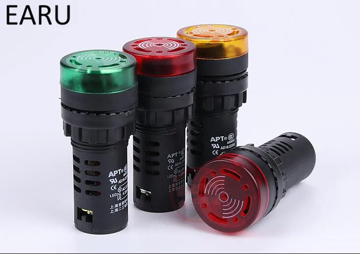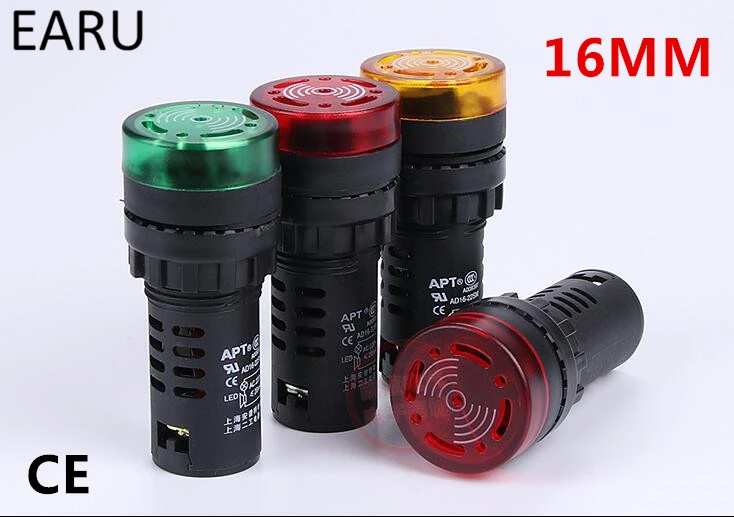 1pc AD16-16M 12V 24V 110V 220V 380V 16mm Flash Signal Light Red LED Active Buzzer Beep Alarm Indicator Red Green Yellow Black
