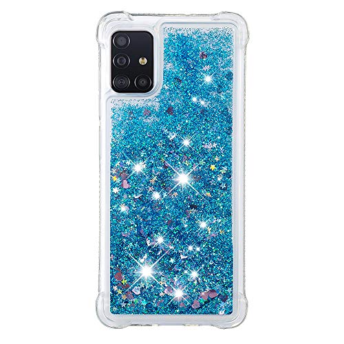 Adamarkeer Cover per Samsung Galaxy A31, Samsung Galaxy A31 Custodia Transparent Glitter Bling Clear Liquido Sparkly Ragazze Donne TPU Silicone Morbido Brillantini Quicksand Case (Blu)