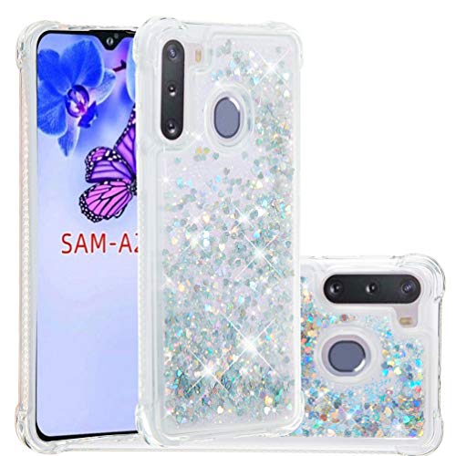 Adamarkeer Cover per Samsung Galaxy A21, Samsung Galaxy A21 Custodia Transparent Glitter Bling Clear Liquido Sparkly Ragazze Donne TPU Silicone Morbido Brillantini Quicksand Case (Argento)