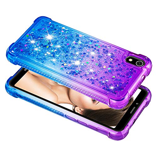 Adamarkeer Cover per Xiaomi Redmi 7A, Xiaomi Redmi 7A Custodia Glitter Bling Liquido Sparkly Luccichio Ragazze Donne TPU Silicone Morbido Brillantini Quicksand Case (Viola-Blu)
