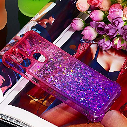 Adamarkeer Samsung Galaxy A21S Custodia, Samsung Galaxy A21S Cover Trasparente Glitter Bling Liquido Sparkly Luccichio Ragazze Donne TPU Silicone Morbido Brillantini Quicksand Case (Rosa-Viola)