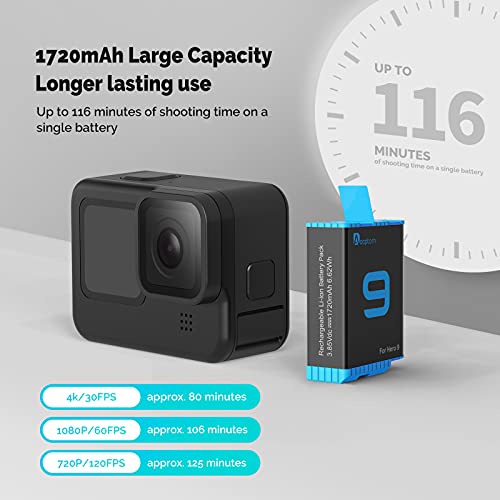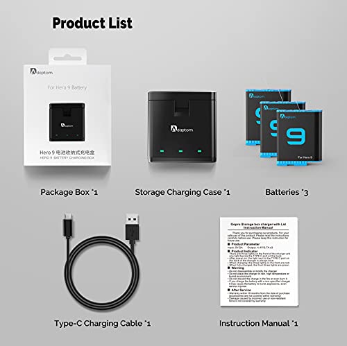 【Totalmente compatible con la batería Gopro 10 9】: las baterías recargables Adaptom 2 son perfectamente compatibles con la cámara de acción Gopro Hero 10 HERO 9 Black. Almacenamiento conveniente, carga rápida, diseño de tres ranuras.