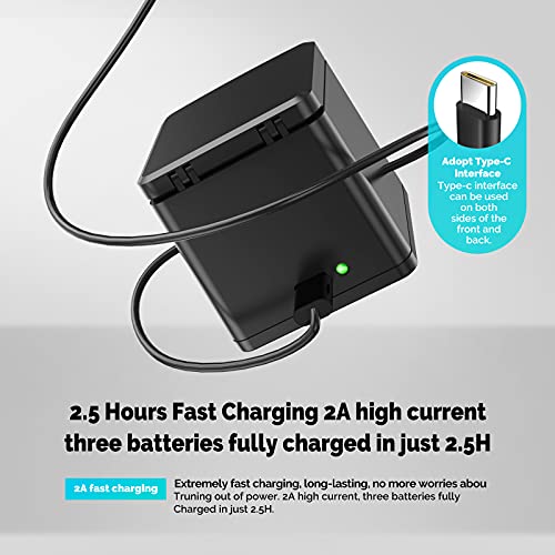 【Proteja su cámara de lesiones】 El cargador triple tiene seis capas de protección (sobre voltaje, sobrecorriente, sobrecarga, cortocircuito, alta temperatura y protección contra sobretensiones) con una construcción resistente al fuego de alta calidad, asegúrese de protección completa para usted y sus dispositivos. 2Una carga extremadamente rápida, duradera, no más preocupaciones por desconectarse de la energía.