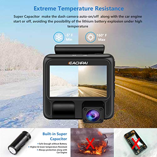 【Super condensatore】 Questo registratore per auto dash cam elimina la carica della batteria convenzionale, per utilizzare un super condensatore, rispetto alle batterie, è più resistente al freddo e al calore, questo migliora la sua sicurezza in ambienti ad alta temperatura e freddo e dura più a lungo.
