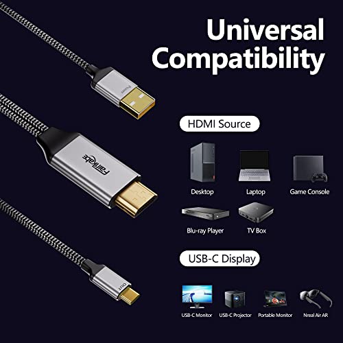 Cavo da HDMI a USB C 4 K a 60 Hz, cavo adattatore da HDMI a USB tipo C, 2 m, con cavo di alimentazione USB, compatibile con MacBook Pro, Nreal Air, iMac, XPS, monitor portatile touchable