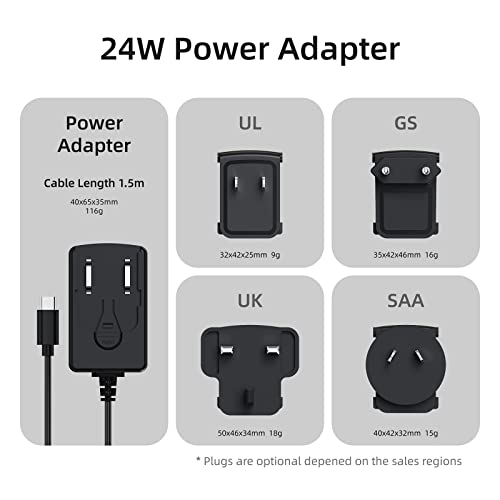 Specifiche del prodotto - Ingresso: 100-240 V CA 50/60 Hz 0,6 A max, Uscita: 12 V 2,0 A Potenza massima 24 W. Tuttavia, l'uscita massima fino a 24 W, il mini PC consuma solo da 8 a 10 W per proteggere la sua CPU dal surriscaldamento o bruciatura. L'intera lunghezza della potenza: 150 cm/59 pollici, peso netto: 116 grammi/0,25 libbre.