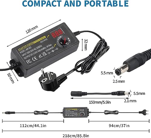 ▶【3V~24V 3A 72W Alimentatore】L'adattatore AC/DC all-in-one da 72W si adatta a molti dispositivi elettronici da 3 ~ 24 V 3 A come motore lineare DC, pompa DC, striscia LED, illuminazione sotto il mobile, box TV, altoparlanti intelligenti, router wireless, diffusore di oli essenziali, umidificatore, ventola USB, telecamera wifi, hub USB, box per hard disk, cornice digitale, sistema di sorveglianza DVR-NVR, ecc. e altri dispositivi con potenza inferiore a 72 W.