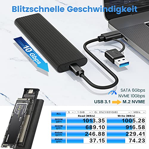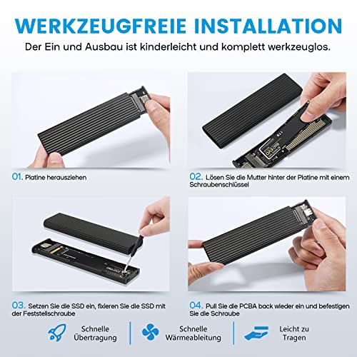 【 Spesso compatibile con Samsung/Crucial/WD etc】Compatibile con SSD 2230 2242 2260 2280 M.2 PCIe NVME di M-Key o M+B Key e M.2 SATA SSD di M+B Key. L'alloggiamento SSD supporta Windows, Mac OS e Linux, Android supporta OTG. Plug and play, senza bisogno di driver o software aggiuntivi. Compatibile con Samsung 960/970/980/870 EVO, 950 980 pro, WD, Crucial P2/ P4/P5, Kingston, Seagate, Toshiba, OWC, PS4, PS5, Xbox Series X ecc.