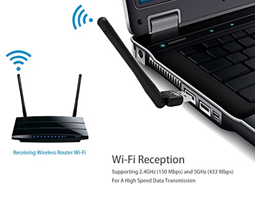 Adattatore WiFi USB 2.0 Aoleca AC600 Scheda di Rete Wireless 2.4GHz 150Mbps or 5Ghz 433Mbps Dual-Band Wireless Network Adapter WiFi Dongle For Notebook/Desktop PC Compatibile con Windows 7 / 8 / 8,1 / 10, XP 32/64 bit,Mac OS10.7.X~Mac OS10.10.X