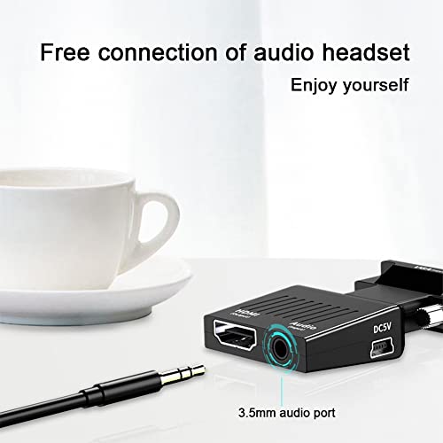 Adattatore da VGA a HDMI con Cavo Audio da 3,5 mm, 1080P 60Hz Convertitore da VGA to HDMI, VGA Maschio a HDMI Femmina Adattatore Compatibile con Computer Portatile (VGA) per Monitor Proiettore TV