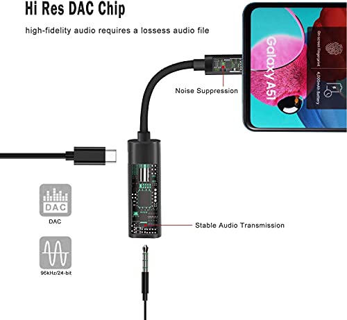 【Alta compatibilità】Adattatore USB C a 3,5 mm ampiamente compatibile con Pad Pro, G, Alaxy S20 S10 S9 S8 Plus Note 20 10 9 8 A80 A60, H, uawei P40 P30 P20 Pro Mate 40 Mate 20 Mate 10 Pro N, OVA 7 6 5 4, e più dispositivi USB C.