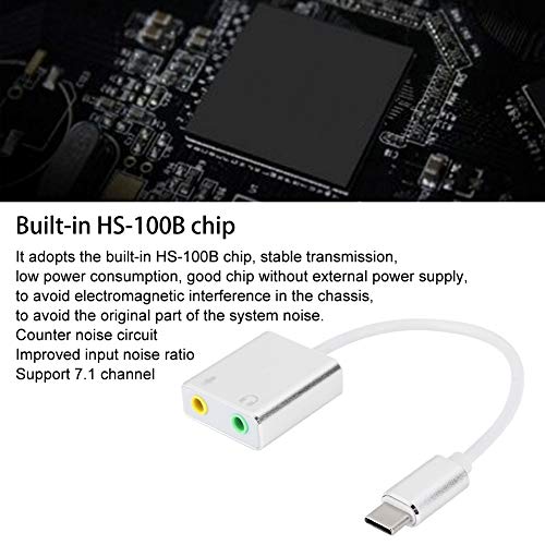 Adattatore audio per scheda audio esterna USB C, adattatore audio da 2 in 1 USB C a jack da 3,5 mm, scheda audio stereo a 7.1 canali in lega di alluminio per telefoni cellulari, laptop, tablet