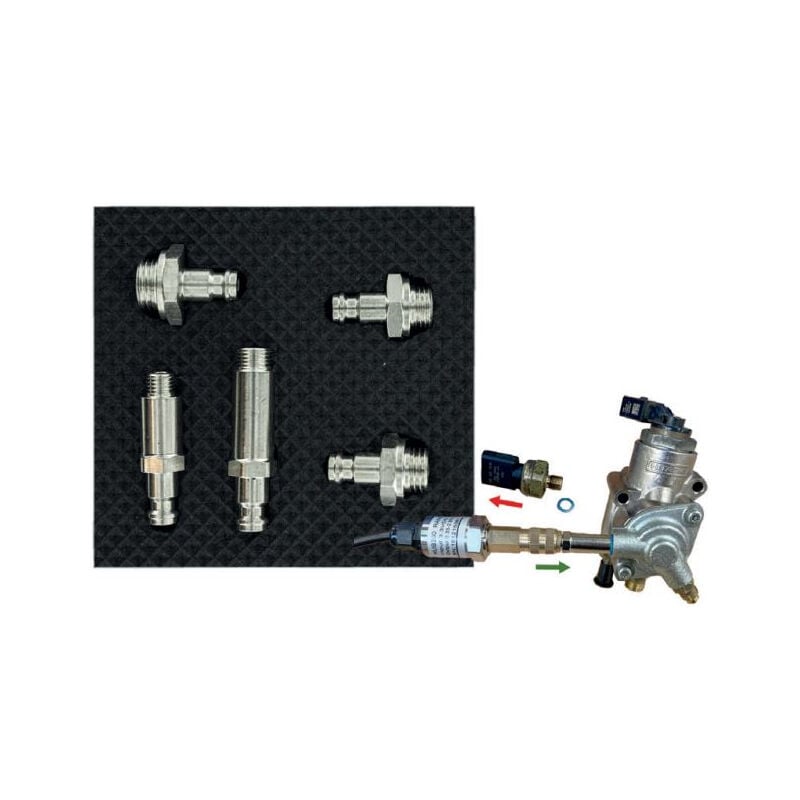 Dettagli: Utilizzando il sensore 0-300 bar incluso nel C-375-DC, questo kit consente di testare l'alta pressione del carburante della maggior parte dei motori a benzina (FSI, TFSI, TCe, T-Jet, ecc.). Utilizzando la posizione del sensore o la posizione del connettore dedicato. Il kit comprende i seguenti adattatori: HP1 = M12x150, HP2 = M12x125, HP3 = M14x150, HP4 = M10x100, HP5 = M8x100