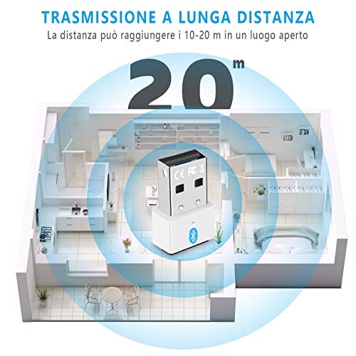 ⚡ 【Bluetooth pc 5.3】 Rispetto alla Chiavetta Bluetooth 5.1, la Bluetooth pc 5.3 ottimizza il consumo energetico e la stabilità con una migliore velocità di trasmissione e capacità anti-interferenza. Lascia che la chiavetta USB Bluetooth si utilizzi più agevolmente e aggiungi la funzione Bluetooth al tuo dispositivo non Bluetooth