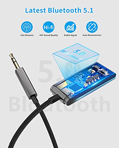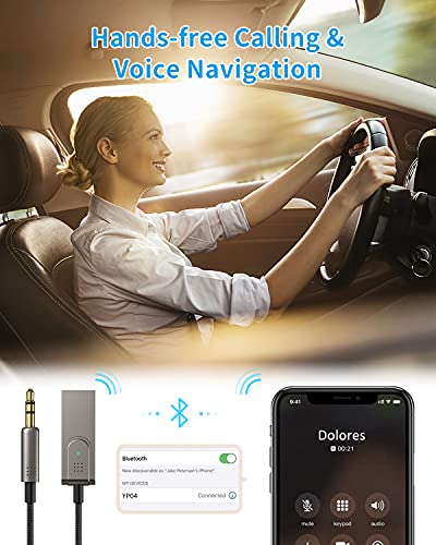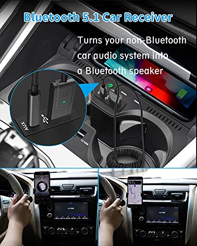 Adattatore Bluetooth per Auto AUX, Ricevitore USB Bluetooth 5.1 con Microfono per Auto Vivavoce e Musica Streaming Compatibile con Sistema Audio Auto, Altoparlante, Amplificatore, Smartphone, PC