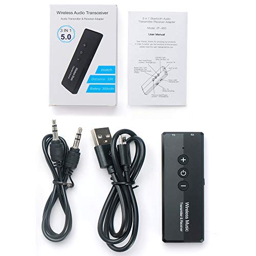 Adattatore Bluetooth Aux Ricevitore Trasmettitore - Emettitore audio Bluetooth 5.0, jack da 3,5 mm per TV, Aux per auto, laptop, PC, cuffie, altoparlanti, radio. Trasmette suono wireless 3 in 1