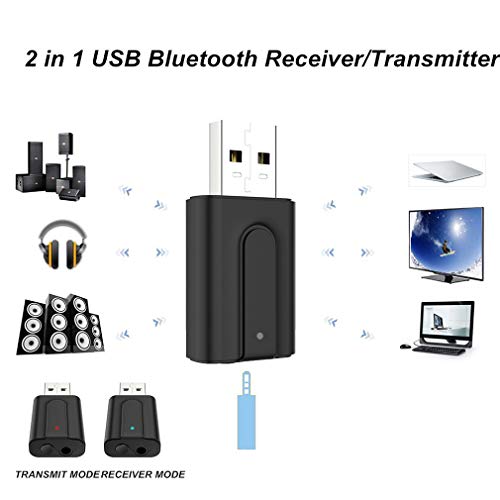 Adattatore Bluetooth 5.0 USB Trasmettitore Ricevitore 2 in 1 Audio Ricevitore Trasmettitore Adattatore Stereo da 3.5 Mm per TV/PC/Autoradio/Cuffie/Proiettore/Laptop/Tablet/Impianto Stereo