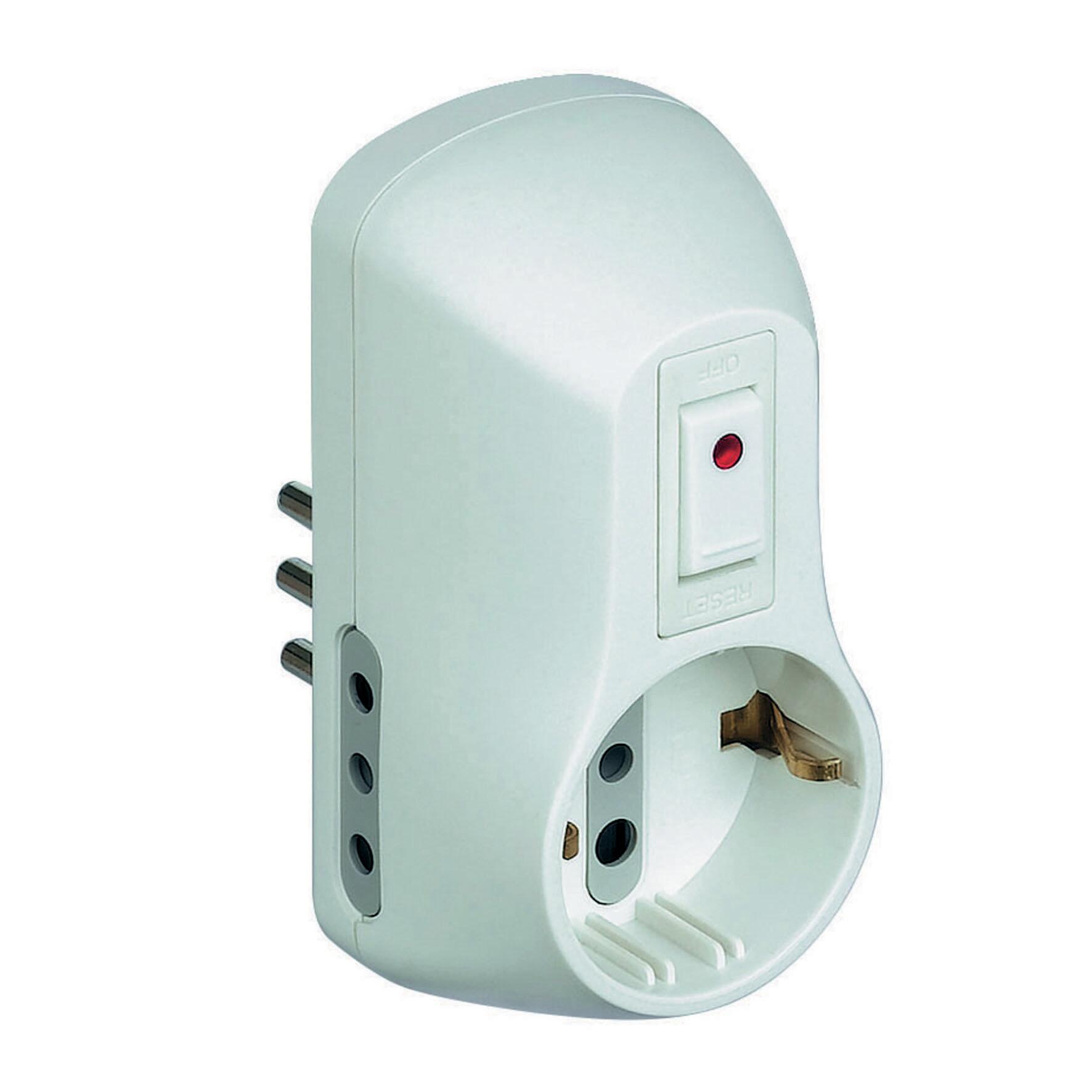 Spina 10A, 1 presa schuko e 2 prese 10 A, con interruttore.