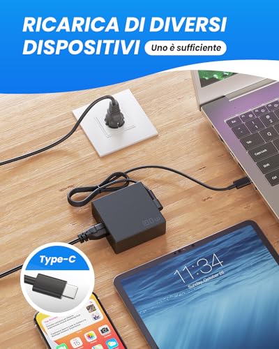 100W USB C Adattatore Caricatore Tipo C per Mac Book Pro 16/15/14/13" 2021/2020/2019/2018, iPad Pro, Lenovo, DELL, HP, ASUS, Huawei, ACER, 96W 87W 65W 45W Caricatore USB C Portatile Adattatore