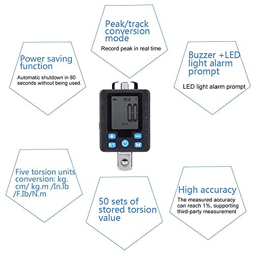 Adattatore per chiavi dinamometriche digitali Display digitale elettronico Misuratore di coppia regolabile Chiave a bussola Strumento di misurazione della torsione in acciaio Tester(BDA4-200)