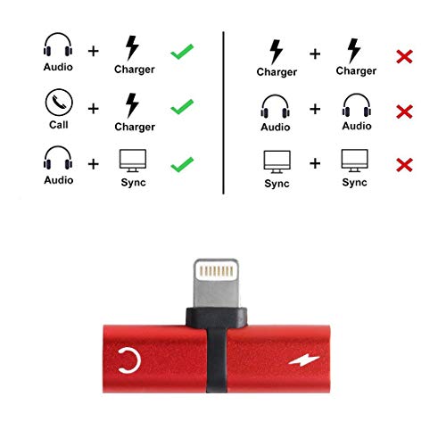 Adattatore compatibile con iPhone, adattatore per cuffie 3 in 1 con funzioni di ricarica, chiamata e musica per iPhone 7/7 Plus, iPhone 8 Plus / 8, iPhone X, iPhone XR, iPhone XS, iPhone XS Max (forma T rosso)